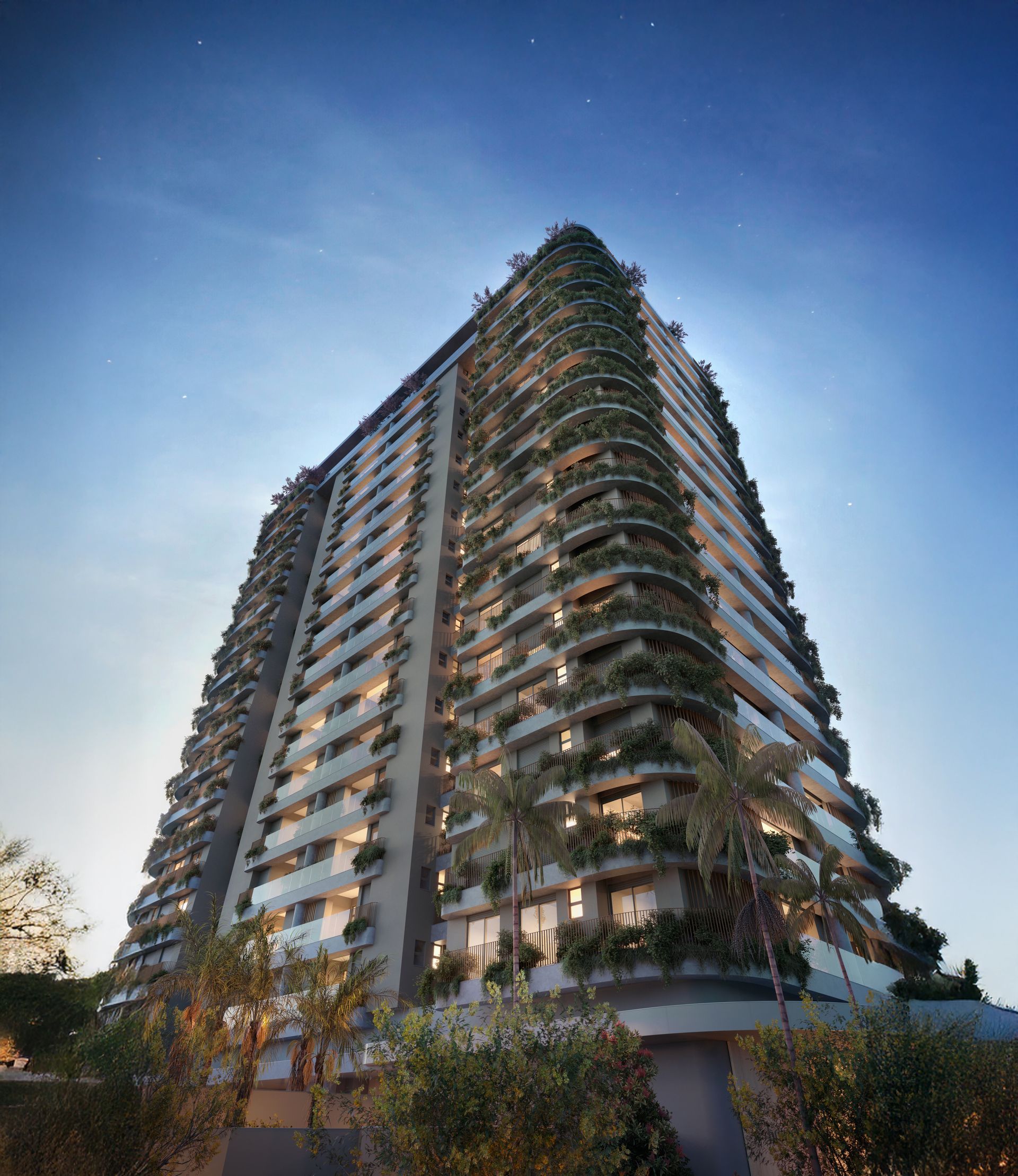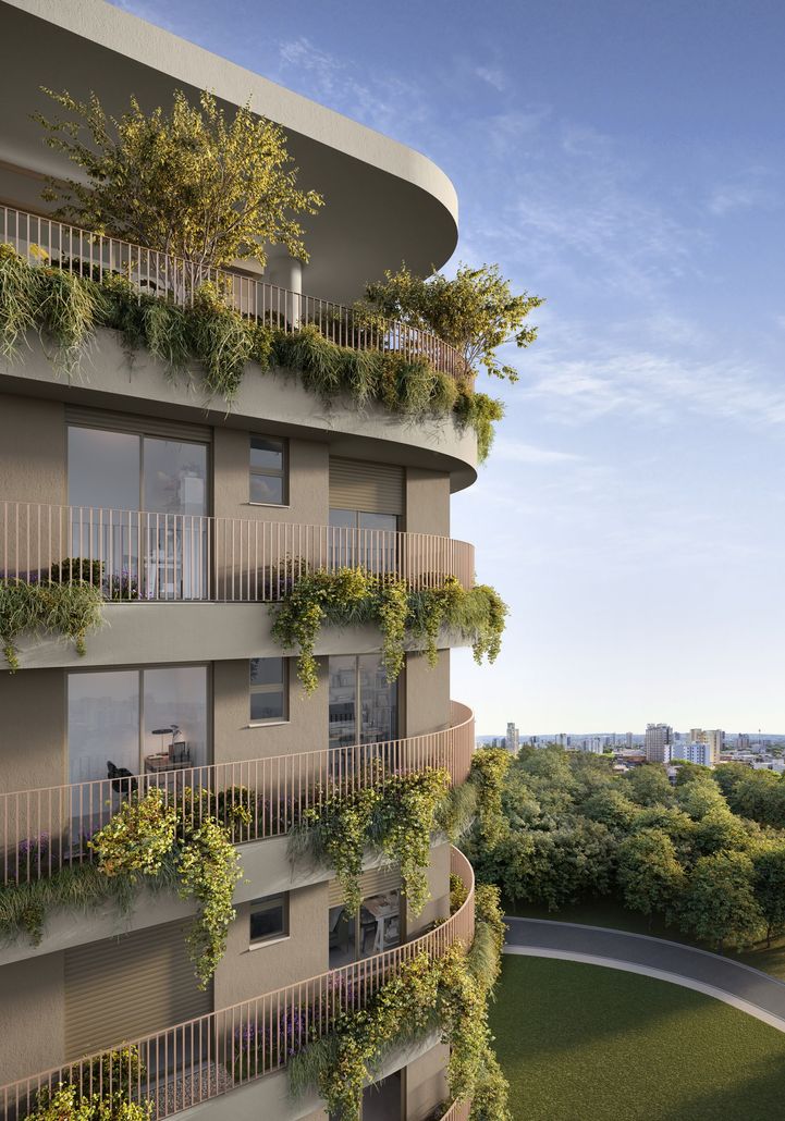 Horizon Residences representa uma possibilidade de olhar para o futuro, sem perder contato com o que temos de melhor no presente. Nossas cidades são carentes de áreas verdes, e a maioria das edificações explora ângulos retos, quinas. Nosso projeto trabalha a curva, o orgânico, a integração da arquitetura com o paisagismo. Retiramos as janelas dos quartos, transformando-as em portas, revelando o horizonte e trazendo o céu e o paisagismo das floreiras para dentro das casas. O Horizon Residences é uma gentileza urbana, algo bonito de contemplar, que convida ao bem-estar.
